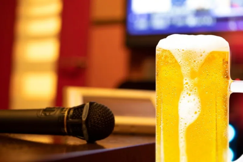 マイクを奪い合うように楽しくカラオケ